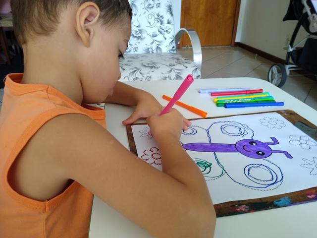 - Cobrir os pontilhados em forma de uma borboleta e flores;