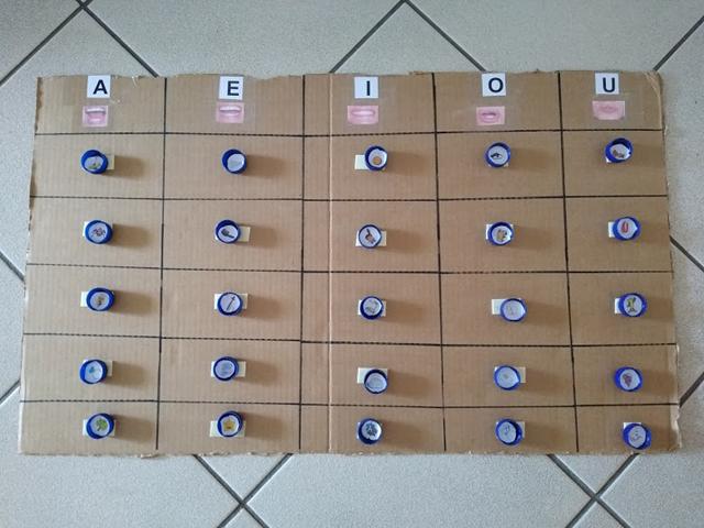 693ª Atividade: JOGO DE TAMPINHA DE GARRAFA PET DAS VOGAIS