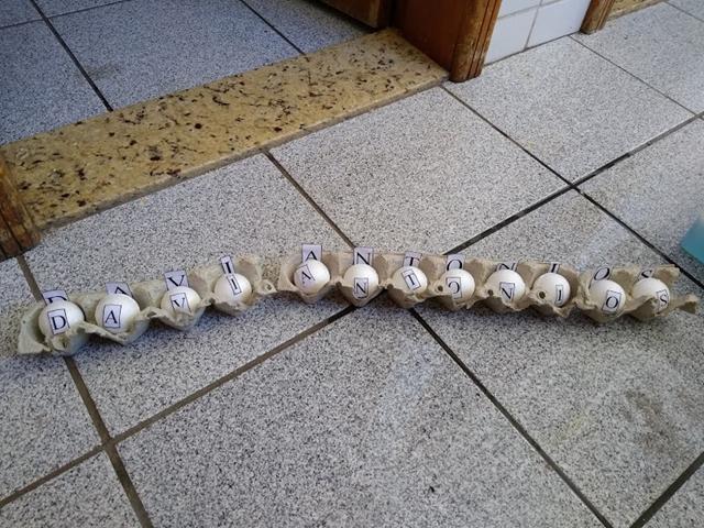 Ensinando o nome com bolas de isopor e caixa de ovo! Atividade do dia: Pega bolinha! O objetivo da atividade é pegar a bolinha de isopor escrita letras do nome Davi Antonios com o uso de tesoura bola e colocar a letra correspondente na caixa de ovo. Trabalhamos a concentração, coordenação motora e as letras do seu nome. Ele amou…  [Leia mais]