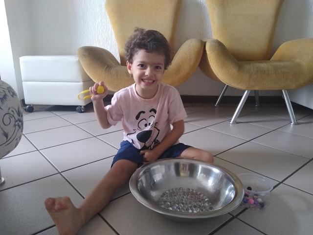 Atividade com a pinça de apertar, bolinhas de isopor e bolinhas de gel! É no brincar que a criança aprende e se desenvolve. É nessa brincadeira que ela tem a oportunidade de descobrir quem ela é, seus desejos e assim, desde pequeno, começa a ser mais autônoma e autoconfiante. Atividade divertida exige muita concentração, foco e paciência! Ela trabalha a…  [Leia mais]