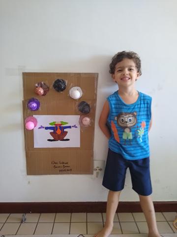 Atividade de hoje: PALHAÇO COM AS BOLAS. Em uma caixa de papelão, a mamãe fez uma abertura em forma de círculo e pintei um lindo e divertido palhaço. O objetivo da brincadeira é colocar as bolas no palhaço com as cores correspondentes como rosa, roxo, marrom, branco, preto, bege e cinza. A brincadeira é ótima para desenvolver a coordenação motora,…  [Leia mais]