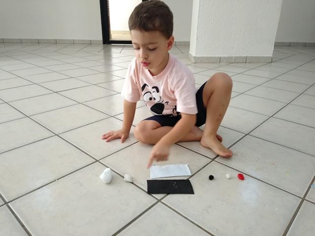 Atividade simples mas bem divertida para praticar o número 9, cor branco, cor preto, forma geométrica retângulo e macio/duro. O primeiro objetivo desta atividade é o contorno do número 9 com massinha da cor preta, não pensei 2 vezes é lógico que Davi Antonios adorou e arrasou ?? Ele foi fazendo "cobrinhas" com a massa, e depois preenchendo a forma geométrica…  [Leia mais]