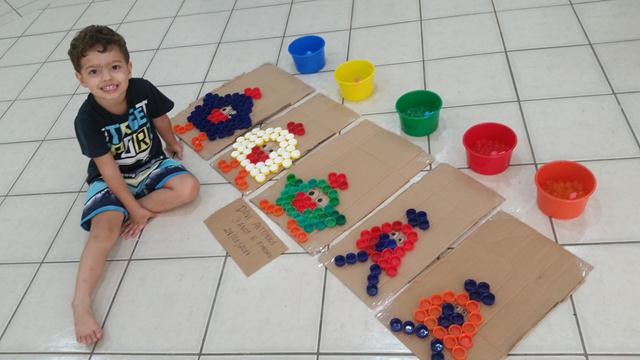 Continuamos trabalhando com o número 6, cor rosa, forma geométrica triângulo e perto/longe. Daquelas atividades simples e tão relevantes. Davi Antonios curte esse tipo de atividade, como pompons, que ele AMA. Montei o número 6 e forma geométrica triângulo com tampinhas de cerveja. Davi Antonios fez transferência de pompons com pinça jacaré. Mamãe pediu para o Davi Antonios identificar o…  [Leia mais]