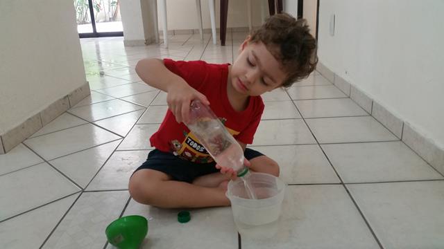 Eu acho o máximo essa capacidade de dar vida ao lixo. Eu sou suspeita em falar, sou apaixonada por atividades criadas com sucatas e recicláveis!!! Atividade do dia: RECEITA PARA O TORNADO NA GARRAFA PET rsrsrs Para essa atividade serão utilizados os seguintes materiais dois garrafas pet transparente de dois litros, água, corante alimentício e fita adesiva. A mamãe colocou…  [Leia mais]