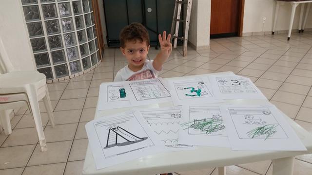 Booooom dia pessoas do bem!! Terceira semana, revisando as atividades com: - Vogal I (escrita e som); - Número 3 (escrita e som); - Cor verde; - Pequeno/Grande. Teve atividades de traçado, lógica, coordenação motora, concentração, percepção visual e atenção. Davi Antonios utilizou vários materiais: lápis de cor, giz de cera, canetinha e tinta. Muito treino, paciência e muita coordenação!…  [Leia mais]