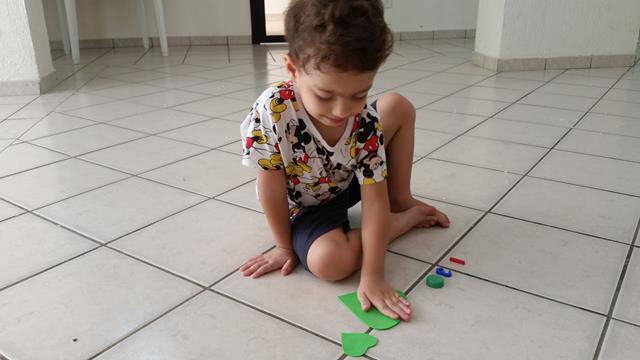 Hoje seguimos trabalhando com a vogal I, número 3, cor verde e pequeno/grande com uma atividade bem divertida. O objetivo desta atividade é caçar as letrinhas, números, cor verde (tampinhas de garrafa pet), pequeno e grande (papel EVA - coração) com o uso da tesoura bola. Após finalizar a atividade, a mamãe perguntou para o Davi Antonios responder o que…  [Leia mais]