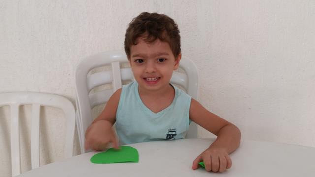 394ª Atividade: BRINCAR COM A MASSINHA DE MODELAR SOBRE O CONTORNO DA VOGAL I, NÚMERO 3, TREINAR A COR VERDE E IDENTIFICAR O CONCEITO PEQUENO/GRANDE (CORAÇÃO)