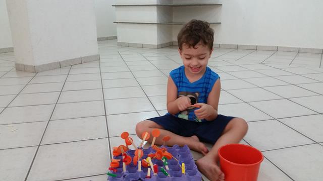 Continuamos trabalhando com a vogal E, número 2, cor laranja e pouco/muito. Daquelas atividades simples e tão relevantes. Davi Antonios curte esse tipo de atividade, como bolinhas de gel, que ele AMA. Montei a vogal E e número 2 com tampinhas de garrafa Pet. Davi Antonios fez transferência de bolinhas de gel com colher medidora de leite. Mamãe pediu para…  [Leia mais]