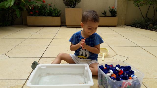 Uma brincadeira antiga! É muito bacana relembrar e reviver a brincadeira quando o Davi Antonios tinha apenas 1 ano e 8 meses. Ah..... muuuuuuitas emoções ao relembrar.  Muito amor!! Que saudade no coração. Essa foi a atividade que mais fez sucesso aqui em casa. O meu menino, que gosta de brincar com água, pegando as tampas com peneira e colocando…  [Leia mais]