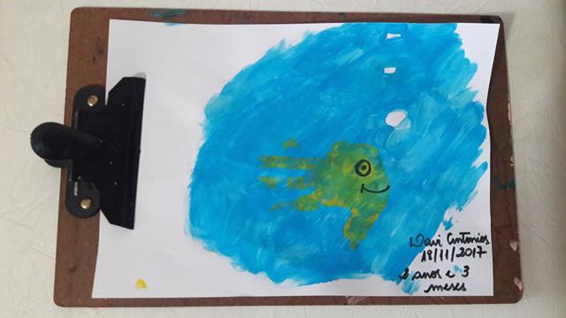 181ª Atividade: IMPRESSÃO DAS MÃOS E OS PÉS COM TINTA FORMANDO UMA BORBOLETA, ABELHA E PEIXE
