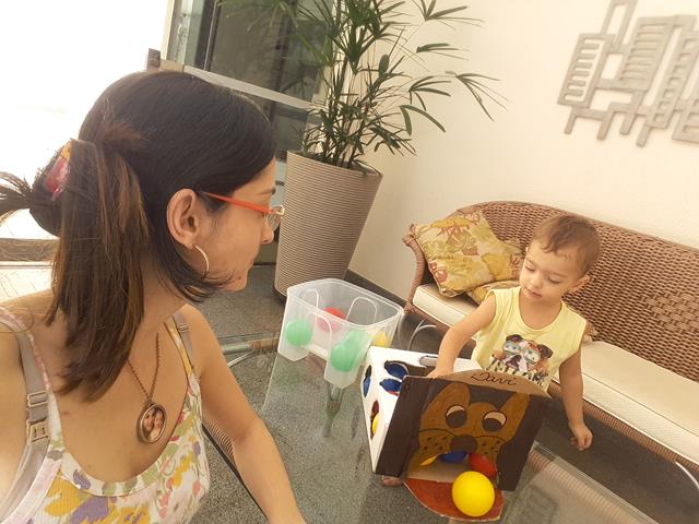 Para trabalhar a paciência do meu pequeno, a mamãe fez uma atividade bem legal. Usando uma Caixa de Sapato fez um furo no meio e ele tem que conseguir colocar a bolinha de ping pong nesse buraco. Além da paciência, estamos trabalhando a concentração, coordenação motora, equilíbrio e distinção de cores. Davi adorou a brincadeira. #maeemdia #brincarjunto #tempojunto…  [Leia mais]
