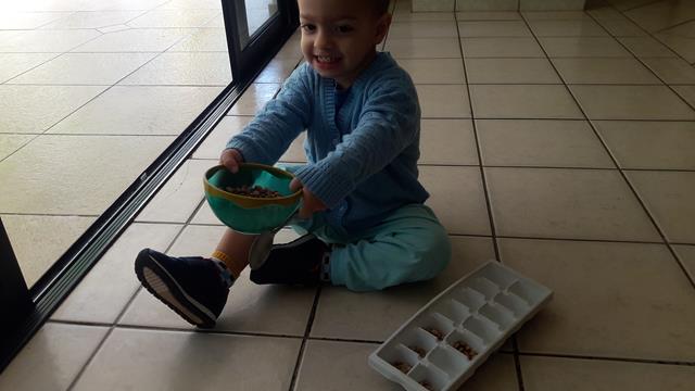 O uso dos grãos de feijão, da forma de gelo, da vasilha e colher favorecem o movimento de transferência, a coordenação motora e a concentração do meu pequeno. À medida que o meu pequeno vai transferindo os grãos para a forma de gelo ele também vai tomando ciência da relação de causa e efeito. Ele sentou e já sozinho pegou…  [Leia mais]