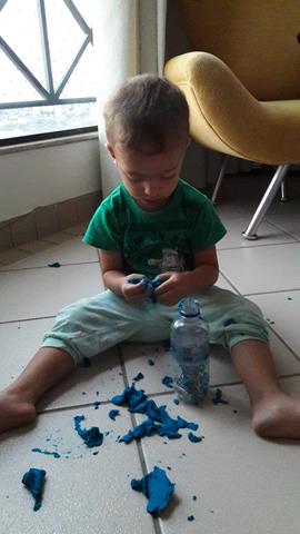A atividade de hoje é tão simples, tão simples!!.. Vamos encontrar os clips dentro da massinha modelar caseira para colocar dentro da garrafa!! Trabalhando Coordenação, movimento de pinça, cor azul... Concentração, atenção e textura!!.. O importante é oferecer as oportunidades de usarem novos utensílios na brincadeira e uma hora eles se interessam (foi assim por aqui). Ele brincou MUUUUUITO tempo!!...   [Leia mais]