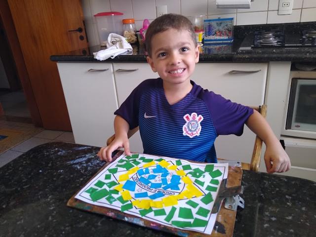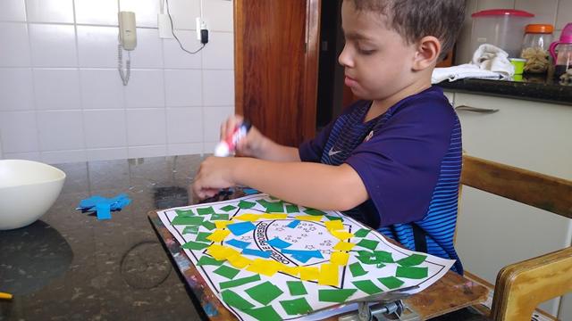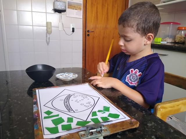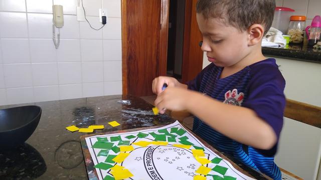 Davi Antonios recortando e colando as formas geométricas livremente nossa linda bandeira. Realizou atividade com sucesso. #maeemdia #brincarjunto #tempojunto #maternidadereal #maternidadeativaeconsciente #educandocomamor #DaviAntonioscom4anose1mes