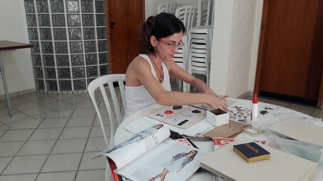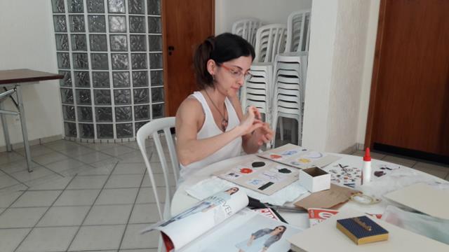 Eu peguei os seguintes materiais: papel panamá, revistas, imagens reais no Google, papel contact, tesoura, cola e fita de cetim. Imprimi imagens reais adesivos. Recortei cada número e letra da revista e colei no papel panamá.
