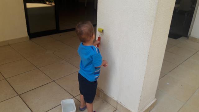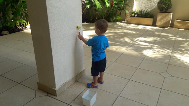 A mamãe resolveu o dia de sol, perfeito para atividades ao ar livre, para experimentar a brincadeira gostosa. A brincadeira é uma atividade perfeita para o calor. O nome já diz tudo: PINTURA COM ÁGUA! A pintura com água, além de ser divertida, vem a vantagem extra para quem se preocupa com bagunça, de que no final a parede seca e fica tudo como se nada tivesse acontecido, só a memória de uma brincadeira feliz! Foi uma delícia! Aproveitando para estimular a coordenação motora usando com o rolo de espuma. Ele curtiu tanto! #maeemdia #brincarjunto #tempojunto #maternidadereal #maternidadeativaeconsciente #educandocomamor #DaviAntonioscom2anose1mes