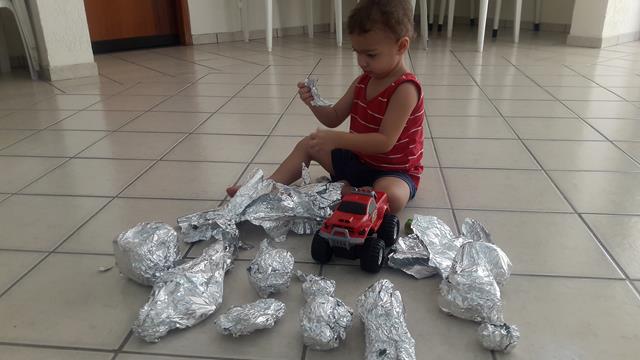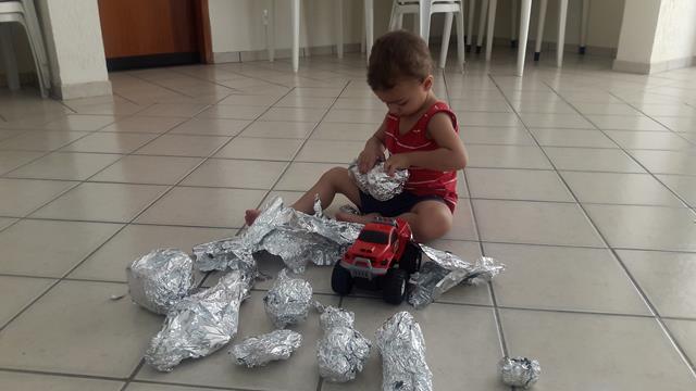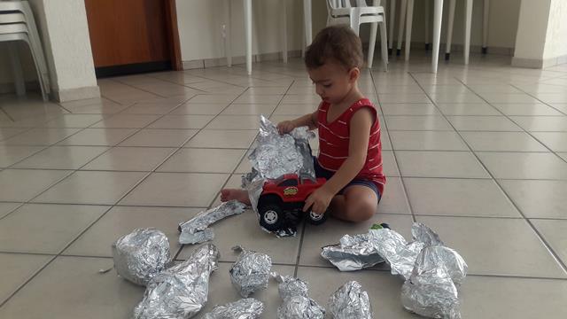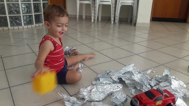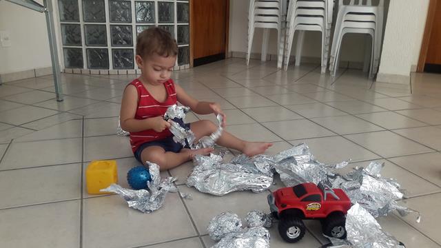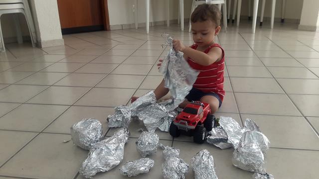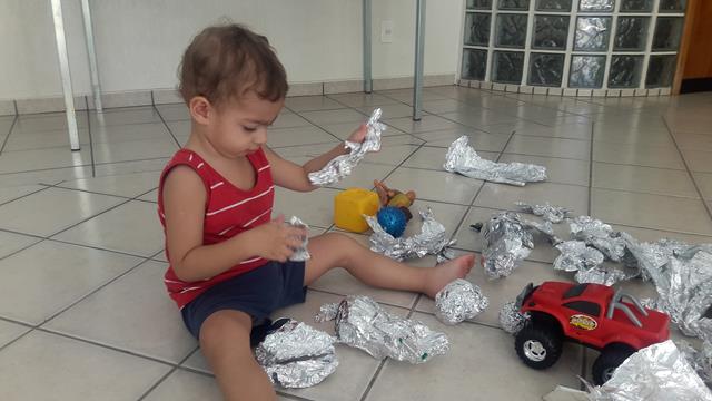 Quem não gosta de surpresas?! Mamãe pegou um monte de brinquedos e embrulhei com papel alumínio! E pronto! Dei pra ele desembrulhar e descobrir o que tinha. Davi a-m-a- desembrulhar surpresas! #maeemdia #brincarjunto #tempojunto #maternidadereal #maternidadeativaeconsciente #educandocomamor #DaviAntonioscom2anose1mes