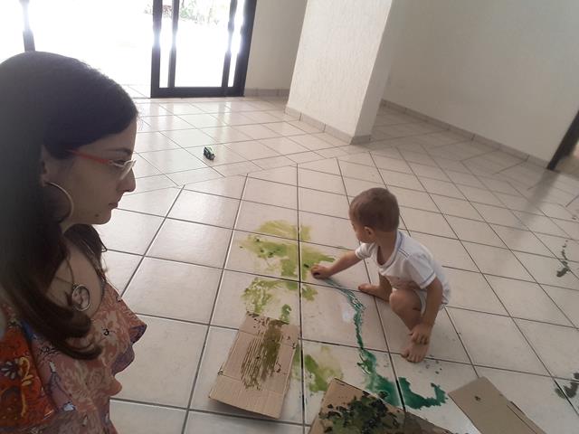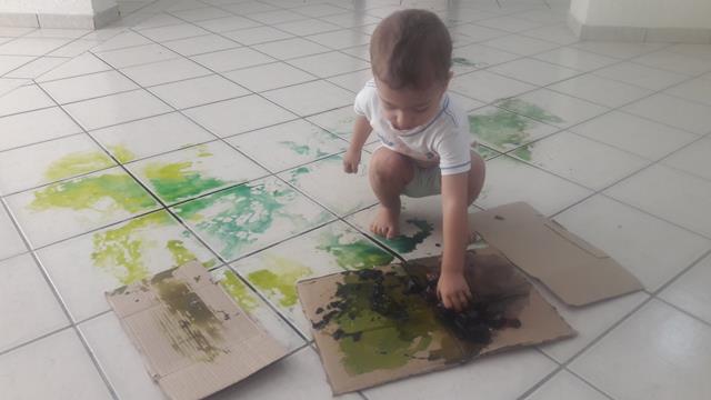 ATIVIDADE DE PINTURA COM GELO COLORIDO: Usando água tingida com corante alimentício feita em forminha de gelo colorido. Em um papelão, Davi Antonios manuseou e experimentou os gelos e assim, brincando, ele pintou uma linda aquarela multicolorida. Ele ficou admirado vendo as cores se misturarem e curtiu cada momento. Ele se divertiu tanto que não ter uma obra para fotografar não teve nenhum problema! Olha o processo dele todo. Trabalhamos coordenação motora ampla, relação de causa e efeito e discriminação de cores. A mamãe ficou encantada com a atividade dele e foi um sucesso. Ele amou e a brincadeira foi uma delícia!!! #maeemdia #brincarjunto #tempojunto #maternidadereal #maternidadeativaeconsciente #educandocomamor #DaviAntonioscom2anose1mes
