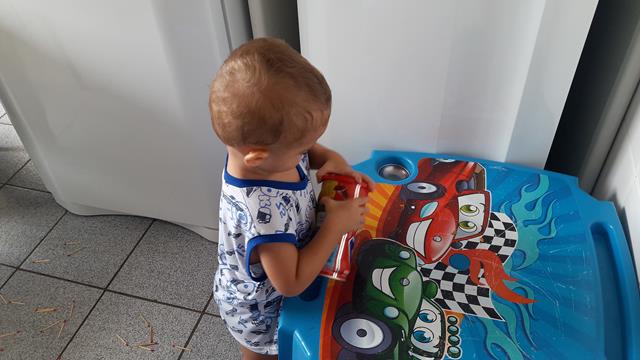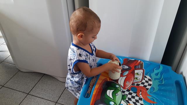 Primeira Atividade do dia com uma lata de alumínio com furinhos e palitos de fósforo. Segunda atividade do dia com uma coqueteleira elétrica de arroz com furinhos e palitos de dente. O intuito é colocar os palitinhos nos furinhos. Ótima coordenação motora fina e concentração. #maeemdia #brincarjunto #tempojunto #maternidadereal #maternidadeativaeconsciente #educandocomamor #DaviAntonioscom1anoe7meses