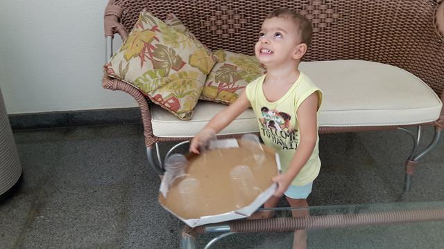 Como estávamos na hora do jantar, resolvemos ir a uma pizzaria. Pizza pronta, vendida aos pedaços: linda de ver é uma delícia de comer. Prato super saboroso que a gente ammmmma! Que tal aproveitar uma embalagem de pizza para fazer uma brincadeira com o meu pequeno? Embalagem de pizza, Copo descartável e Bolinhas de Isopor Coloridos. A mamãe pintou as bolinhas de isopor em cada cor diferente, colou os copos descartáveis em uma embalagem de pizza. Essa atividade tem a finalidade de acertar a bolinha na casinha. Ele tentou e algumas vezes acertou, outras não. Para facilitar a brincadeira, ele também colocava a bolinha com as mãos. Arrumou um jeito diferente de brincar. Com essa atividade trabalhamos a coordenação viso motora e concentração. #maeemdia #brincarjunto #tempojunto #maternidadereal #maternidadeativaeconsciente #educandocomamor #DaviAntonioscom2anose2meses