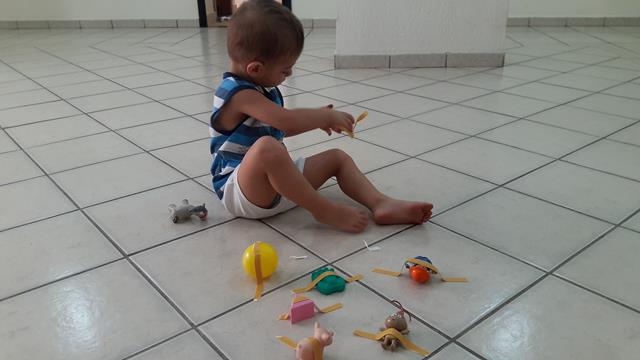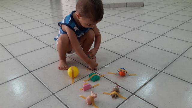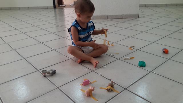 Uma atividade mega bacana para estimular a coordenação motora fina é fita adesiva. A mamãe colocou alguns objetos e coloquei fita adesiva em cima dos objetos para que o Davi Antonios puxasse de um lado. Esta é uma atividade excelente para trabalhar a motricidade fina e a mobilidade dos dedos. Fita adesiva (tipo fita crepe) é um material simples, barato e muito versátil para inventar diversas brincadeiras. Pode criar até uma recompensa depois, de preferencia nada que envolva dinheiro, para não perder a simplicidade e encanto da brincadeira. Depois fiquei pensando o quanto essa brincadeira desenvolve os pequenos: MOVIMENTOS, SUPERAÇÃO, RACIOCÍNIO. Quanto valor tem uma brincadeira, não é?! Ele ADOROU. #maeemdia #brincarjunto #tempojunto #maternidadereal #maternidadeativaeconsciente #educandocomamor #DaviAntonioscom2anose2meses