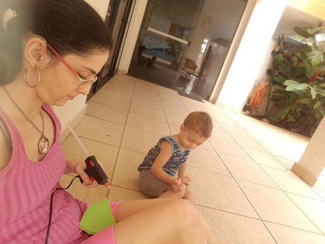A famosa língua de sogra todos conhecem, né? Aquele brinquedo popular em festa de aniversários que parece um apito, mas quando se sopra nele surge uma “língua” (tardinha das sogras, né? Nem todas são linguarudas… por quê esse nome?). Olha que divertido! Essa brincadeira é uma diversão só que usa materiais simples para fazer o peixinho com língua de sogra. A atividade de hoje foi para exercitar os pulmões com esses sopradores, ou língua de sogra. Para fazer o peixe com língua de sogra, a mamãe precisou de: EVA; língua de sogra; cola quente; e hidrocor preto para os detalhes do olho e da boca.