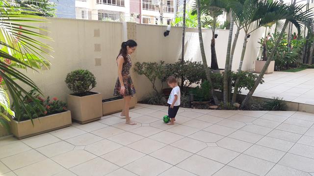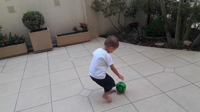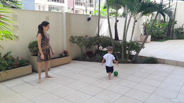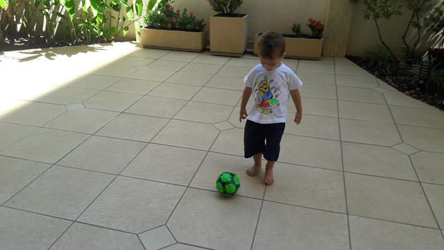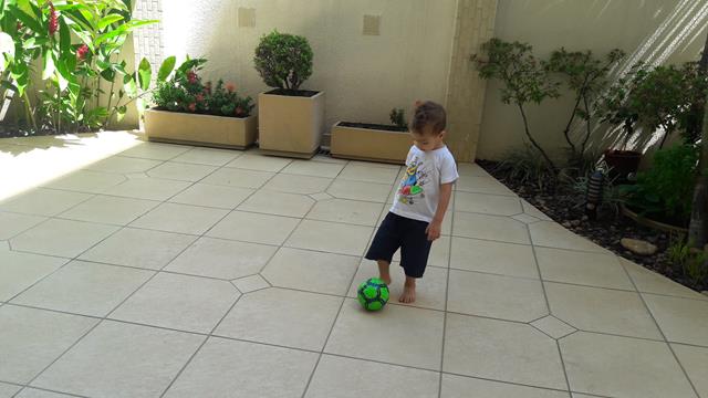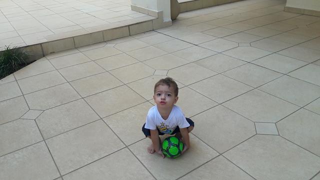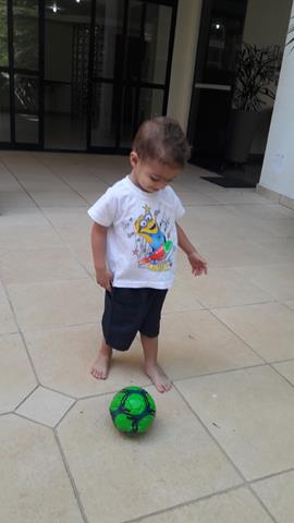 Ele me observa falando com o mesmo sorriso no rosto e disse: “Sim,mamã”. Além de saudável e super divertido, brincar de bola é também exercitar a coletividade. É um esporte que faz bem para o corpo, a mente e a alma!