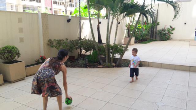 A mamãe perguntou ao filho: “Filho, vamos jogar a bola?”