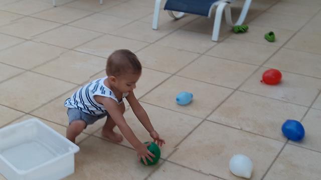 Nesse calorão é uma delícia brincar com água. A dica de brincadeira é pegar bexiga cheia com água: atividade sensorial tátil e proprioceptiva. Ele AMOU misturar essa bagunça toda com brincadeira de bexiga d' água para refrescar. Hoje foi muito divertido, pois os balões flutuam e servem como bola. #maeemdia #brincarjunto #tempojunto #maternidadeativaeconsciente #educandocomamor #DaviAntonioscom1anoe8meses