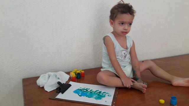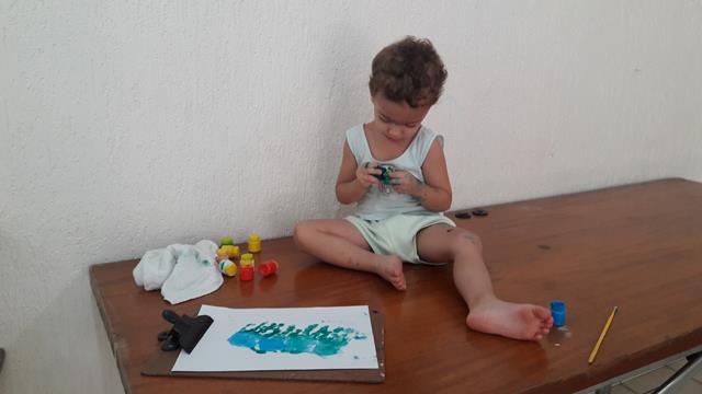 Toda criança gosta de brincar com tintas, vamos apreciar esta deliciosa arte com as mãos, usando para fazer uma lagartinha muito comilona? São feitas tintas a base de água.