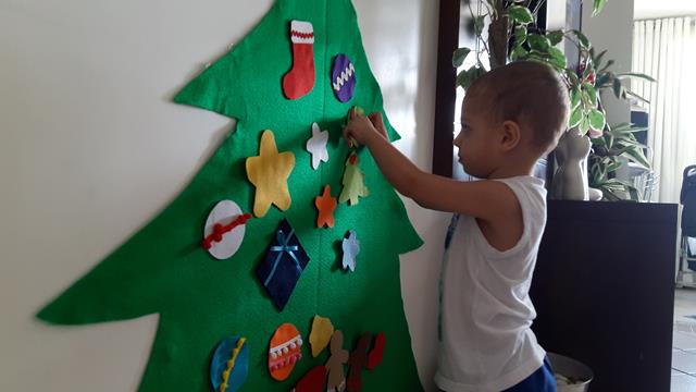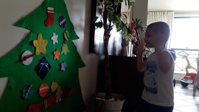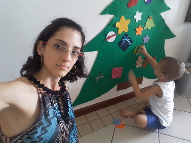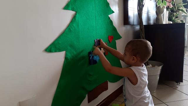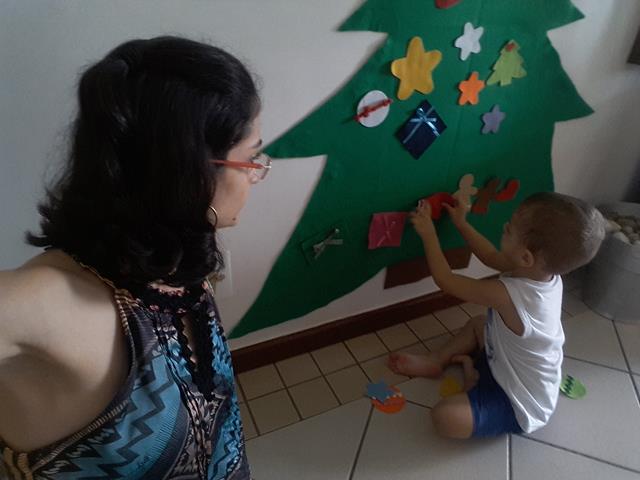 Hoje foi o dia do Davi Antonios montar sua primeira Árvore de Natal. Essa Árvore de Natal inspirada pelo Método Montessori para que ele mesmo pudesse montar, brincar, sem risco de cair, derrubar, se machucar, cortar, é o nosso grande amigo, o FELTRO! Amo feltro! É um material muito amigável, fácil de manipular, macio, agradável ao tato. E o mais bacana: é um material que se presta ao lúdico. Feltro com feltro adere, gruda... Sorrisão de quem adorou a Árvore de Natal feita com tanto carinho pelo site www.quintalfestas.com.br através da Iara e Paulinha que recebeu o presente da mamãe. Claro que ele (e de toda a nossa família) amou de paixão e se divertiu muito montando e desmontando a árvore muito prática e “a prova” de criança! Rsrsrs #maeemdia #brincarjunto #tempojunto #maternidadereal #maternidadeativaeconsciente #educandocomamor #DaviAntonioscom2anose4meses