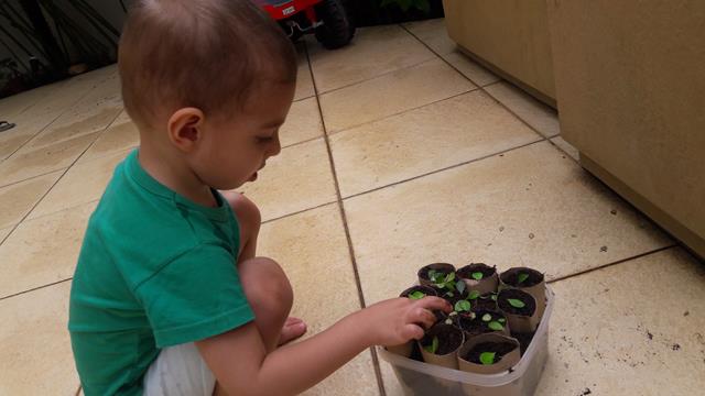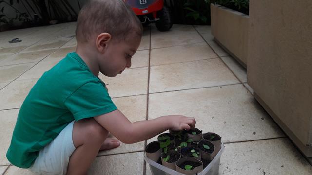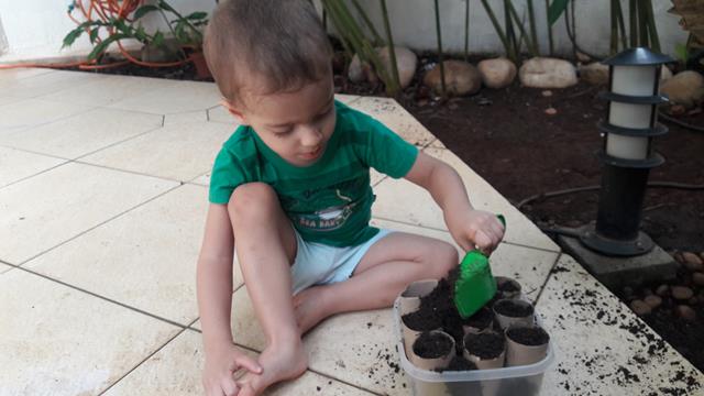 Filho, vamos cuidar da terrinha e das plantinhas que Deus criou?