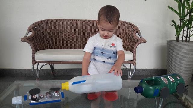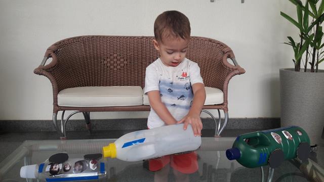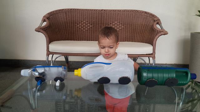 Crianças não precisam de brinquedos caros, nem de brinquedos novos para se divertir, eles precisam de novidade. A prova disso é o grande sucesso do caminhão feito com reciclagem dos produtos de limpeza. Reciclar materiais é um grandioso aprendizado para crianças.