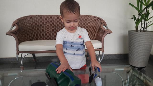 A primeira nova paixão dele é carro, caminhão e trator!
