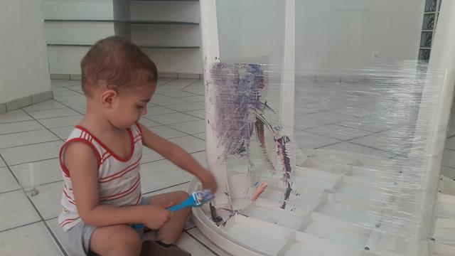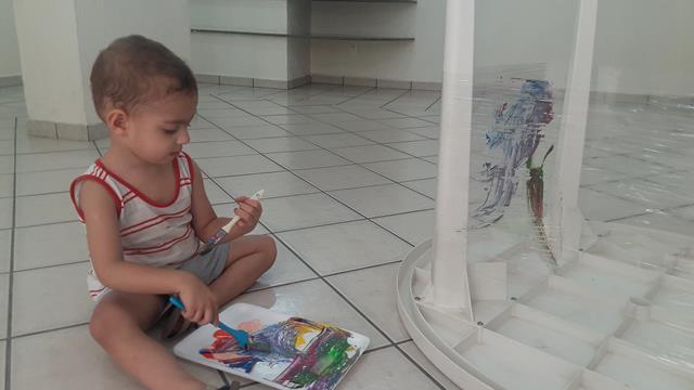 Atividade simples e que ele adora fazer! Ótima para passar o tempo e para treinar um pouco de coordenação motora fina... A mamãe utilizou plástico filme para Davi Antonios pintar com pincel. Brincadeiras com tinta sempre são sucesso e o Davi Antonios amou. #maeemdia #brincarjunto #tempojunto #maternidadereal #maternidadeativaeconsciente #educandocomamor #DaviAntonioscom2anose5meses