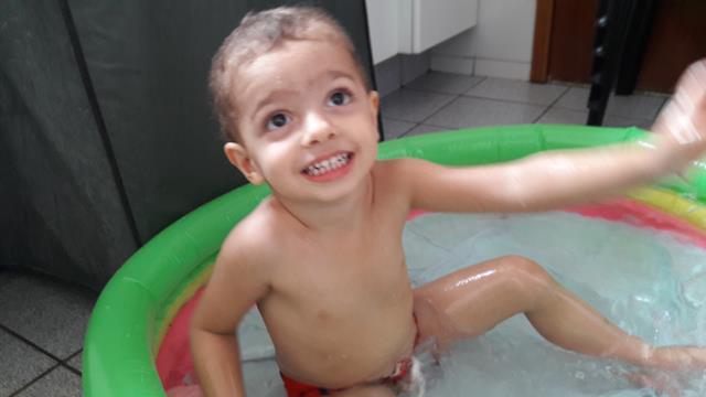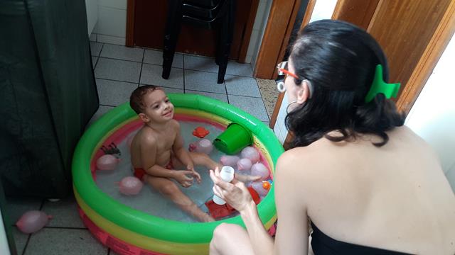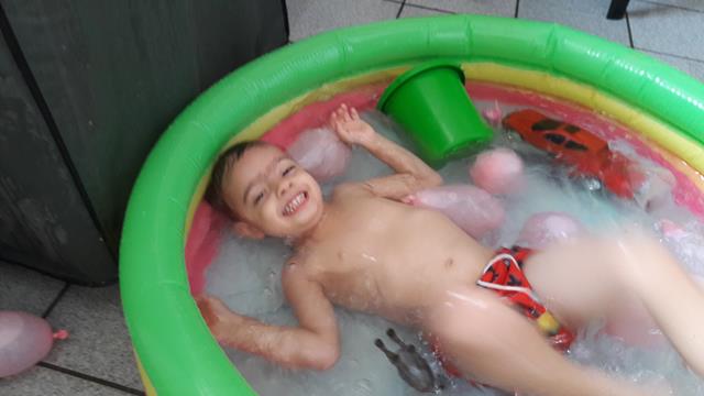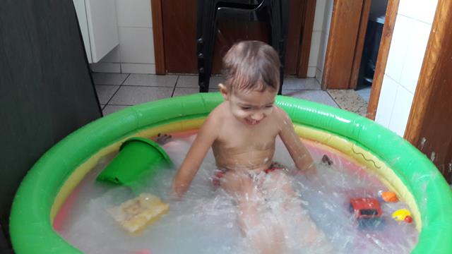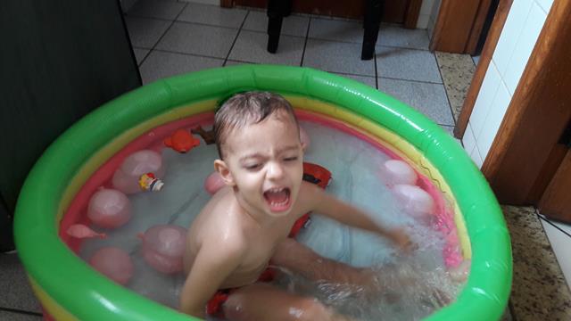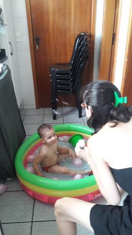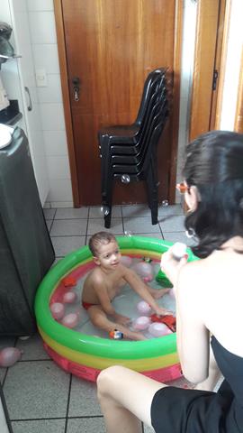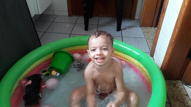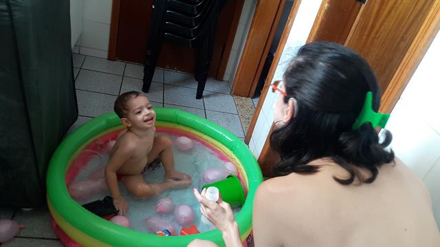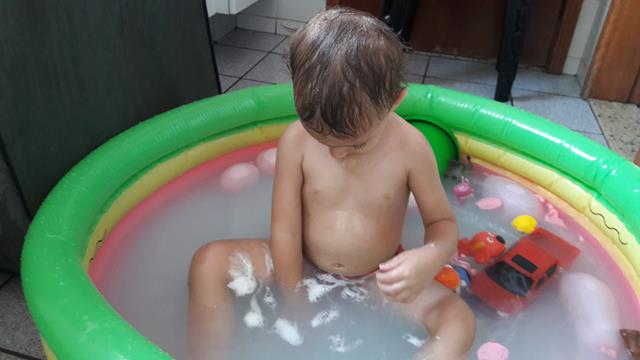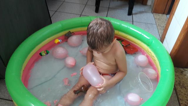 Neste calor, não tem coisa melhor do que brincar com água!!! Davi Antonios passa um tempão envolvido em atividades com água. Ele ama toda brincadeira que envolve água, então a mamãe improvisou bexigas, bolha de sabão, espuma e objetos para diferenciar um pouco. Ele lavou seus brinquedos, estourou algumas bexigas e se molhou bastante.