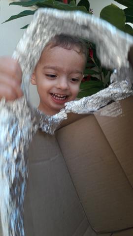 Quem nunca sentiu um sorriso largo e a alegria de uma criança quando brinca... se dê essa oportunidade... É fascinante! Davi Antonios adora céu, avião e também porque ele tem um livro muito fofo que fala sobre um astronauta e ele AMA! Tem um astronauta querendo voar até o espaço. A mamãe utilizou a caixa de papelão, garrafa PET e papel alumínio. Caprichado, bonito, com carinho e amor. A brincadeira fez enorme sucesso por aqui. Davi AMOU! #maeemdia #brincarjunto #tempojunto #maternidadereal #maternidadeativaeconsciente #educandocomamor #DaviAntonioscom2anose5meses