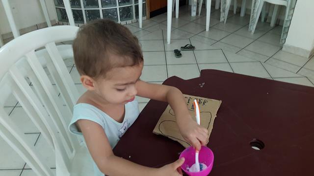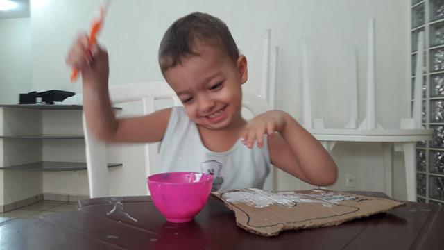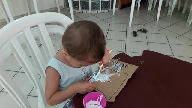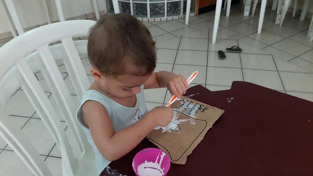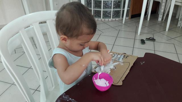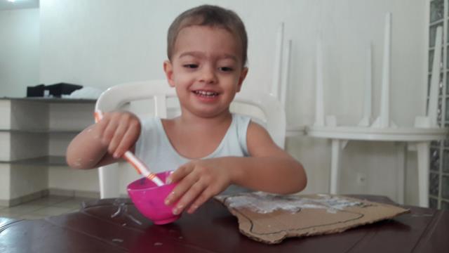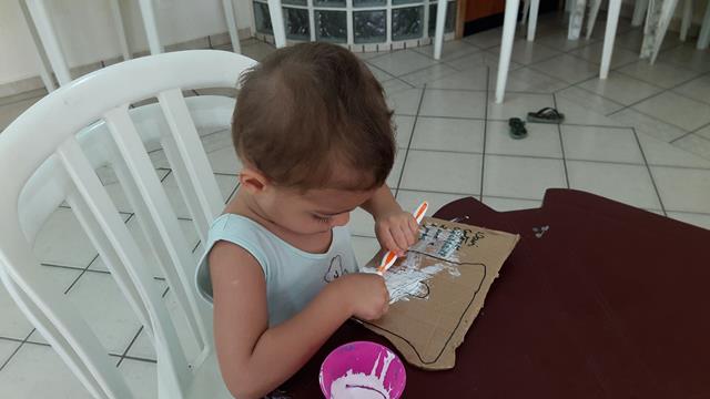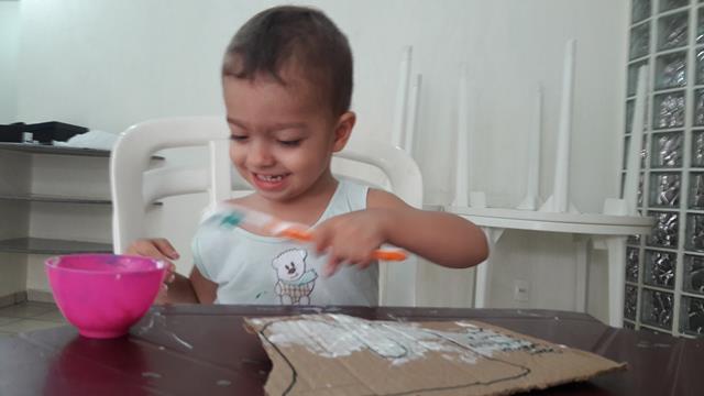 Quando os dois se juntam... Ele não suporta escovar os dentes... Todo dia é um chororô! A mamãe desenhou esse dente no papelão e falou para ele que os dentes estavam marrons e sujos, explicou que precisava escovar para ficar branquinho. Nessa atividade determinei o espaço que poderia pintar/escovar, essa foi a primeira vez que pintou assim com limites e acho que não se saiu bem... Trabalhamos a coordenação motora e a coordenação motora fina, coordenação olho mão, limites, atenção e concentração... Davi super curtiu! #maeemdia #brincarjunto #tempojunto #maternidadereal #maternidadeativaeconsciente #educandocomamor #DaviAntonioscom2anose5meses