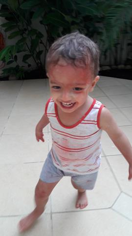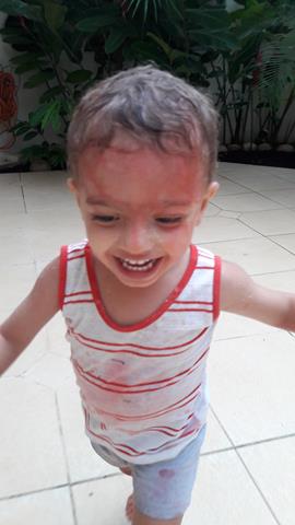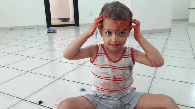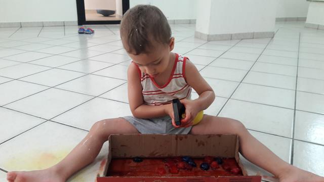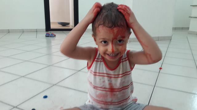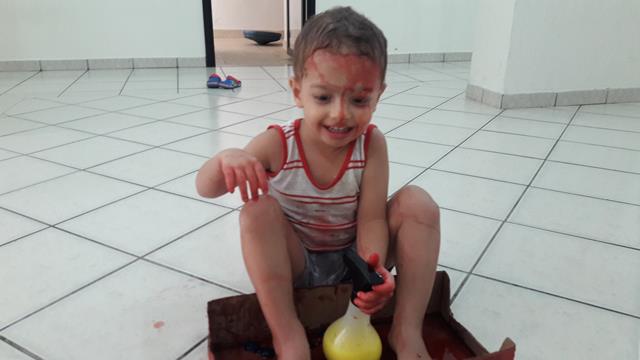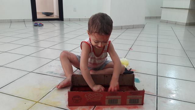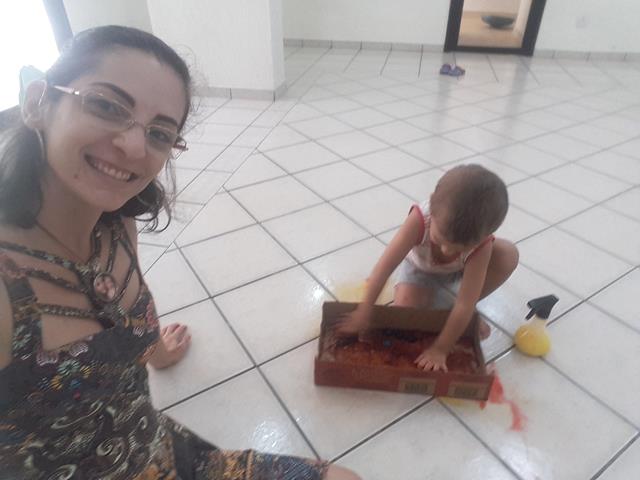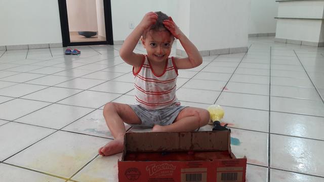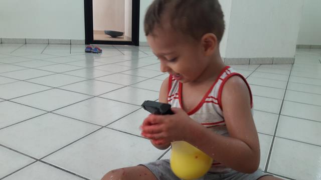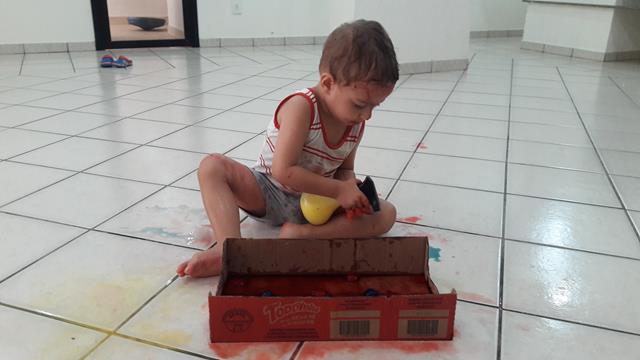 A mamãe fez dois gelos coloridos em formas de plástico de estrela e uva usando água e corante alimentício. Colocou os gelos coloridos em cantos diferentes para percebermos nitidamente as cores se espalhando. A brincadeira de hoje foi utilizar o borrifador de água da mamãe. A mamãe colocou tinta amarelo na água e amido de milho no borrifador. Como o Davi Antonios adora molhar as plantinhas com o borrifador. Depois deixei o Davi Antonios a vontade para misturar todas as cores com as mãos. Ele adorou e se divertiu muito com esta atividade. Após a atividade, ele me ajudou a limpar a bagunça, que fofo :)! #maeemdia #brincarjunto #tempojunto #maternidadereal #maternidadeativaeconsciente #educandocomamor #DaviAntonioscom2anose5meses