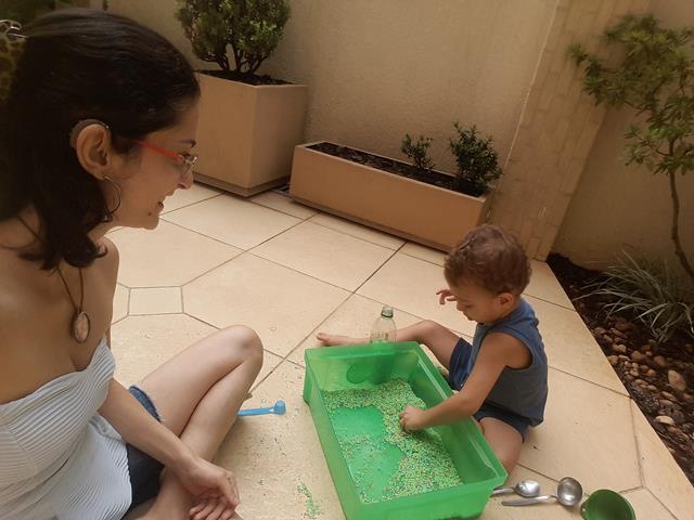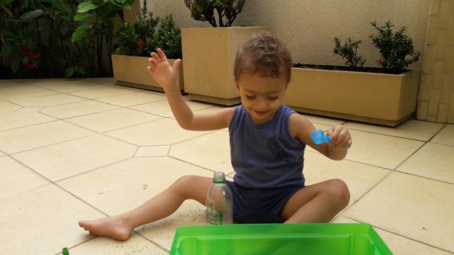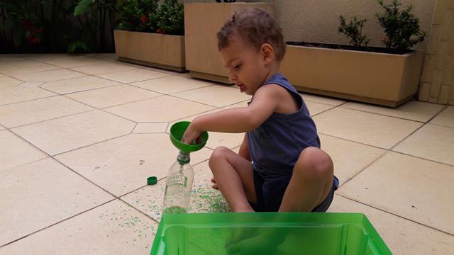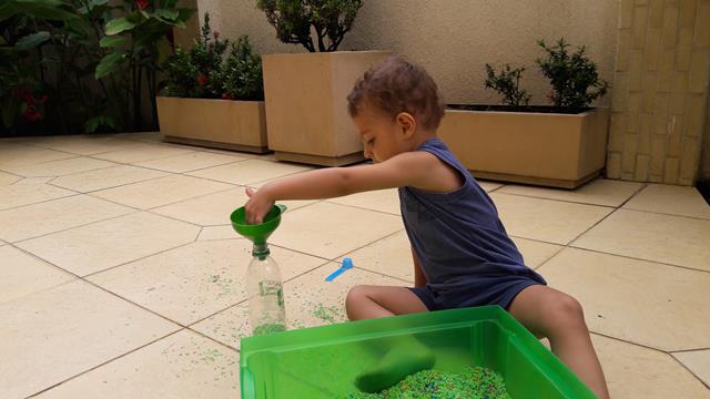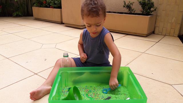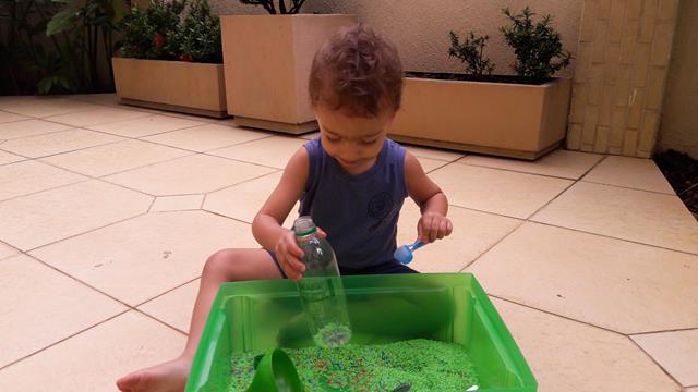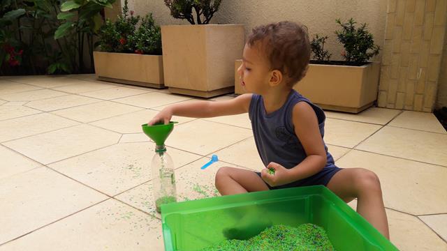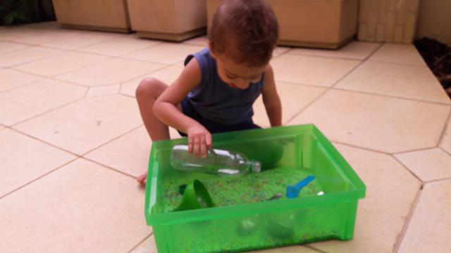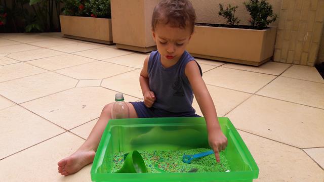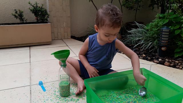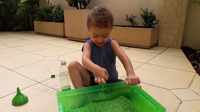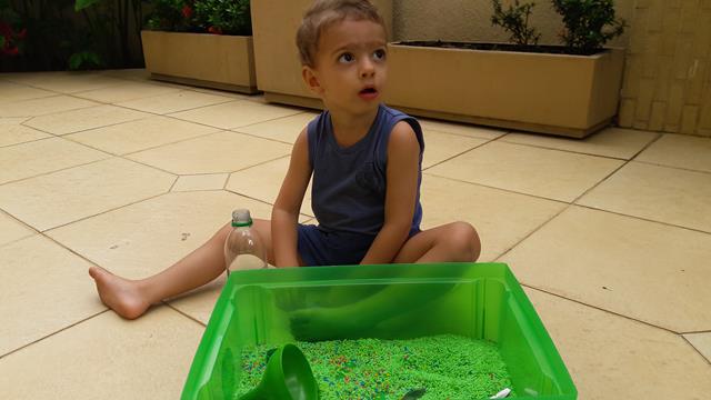 A mamãe colocou uma bandeja de arroz colorido com garrafa pet e colheres para o Davi Antonios explorar e o deixei livre para brincar! Ele começou com uma transferência de arroz com a colher usando o funil que encheu meu coração de alegria e orgulho, apertou o arroz com as mãos. Ele amou essa parte e quando acabava jogava pra cima, para o lado, despejava no chão e colocava de novo. Depois limpamos toda a sujeira. Delícia de brincadeira com tantas possibilidades que levou bastante tempo de concentração! Pra quem quer trabalhar paciência e equilíbrio. #maeemdia #brincarjunto #tempojunto #maternidadereal #maternidadeativaeconsciente #educandocomamor #DaviAntonioscom2anose6meses