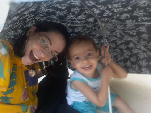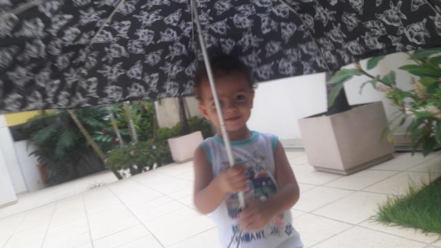 Filho, sabe por que estamos de guarda-chuva? O guarda-chuva serve para proteger-nos da chuva e também do sol. Estamos com o guarda-chuva para lembrar que Deus nos protege de todas as coisas ruins.