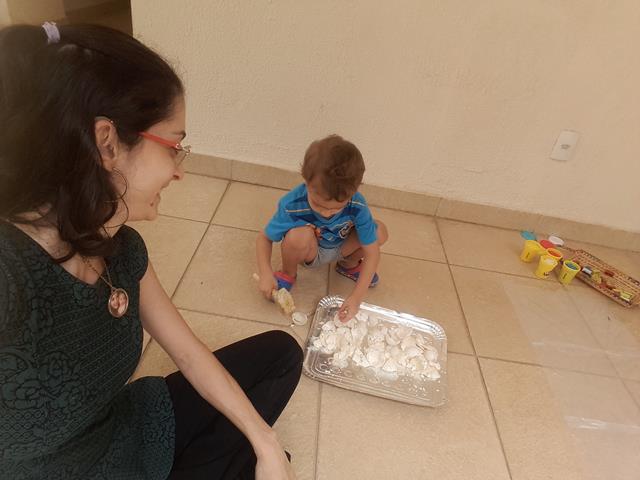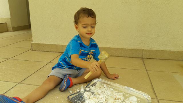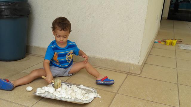 Hoje, a mamãe estava trocando a roupa do Davi para brincar na área de lazer. Depois, ele foi na cozinha, abriu a geladeira e começou a pedir " Ouvo, mamanhê. Ouvo". E a mamãe achou que ele estava querendo levar o ovo para brincar com o martelo. A mamãe explicou: “Filho, esse ovo é de comer. A mamãe guardou as cascas de ovo para você brincar novamente.” Ele ama ovo e vive pedindo a casca. Então, a mamãe lavou a casca e colocou para ele brincar novamente. Outra atividade é brincar com massinha de modelar com lego. A mamãe desenhou usando várias pecinhas do lego com o nome “DAVI’’. Ele amou e brincou bastante. Foi um sucesso! #maeemdia #brincarjunto #tempojunto #maternidadereal #maternidadeativaeconsciente #educandocomamor #DaviAntonioscom2anose6meses