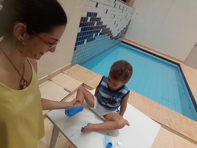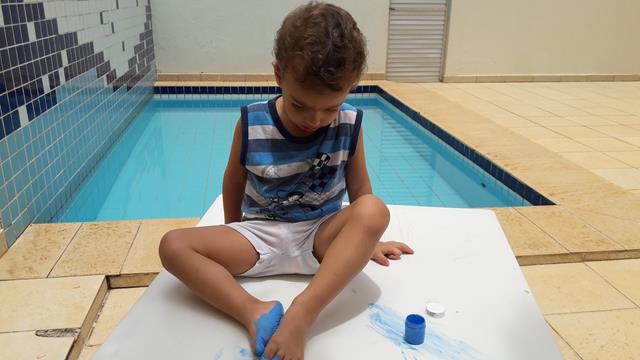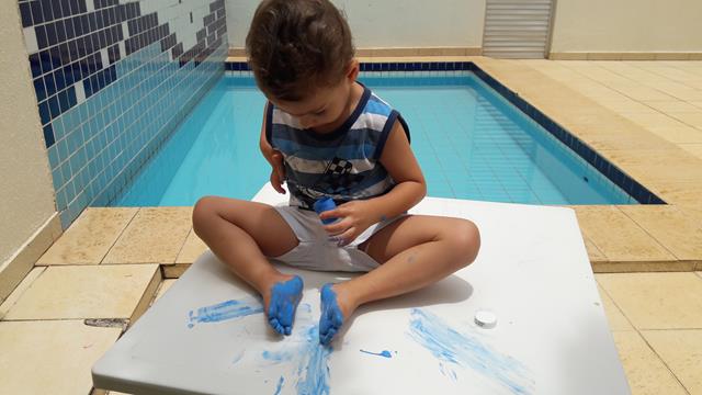 ARTE COM GUACHE – PINTURA COM OS PÉS: Mamães, olha como é importante deixar os pequenos com os pesinhos no chão! Eu sempre deixei, e você? Quando era bebê, eu deixei ele andar descalço por mais tempo, pra sentir onde pisava como grama, terra, ... É uma ótima forma da criança perceber as texturas, perder um pouco daquela aflição do toque e necessário para um crescimento saudável.