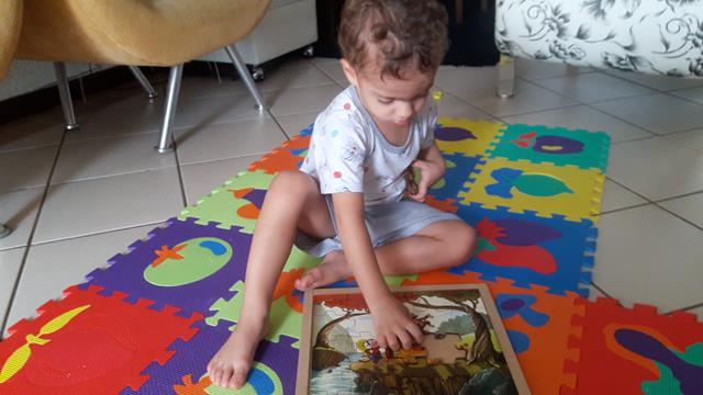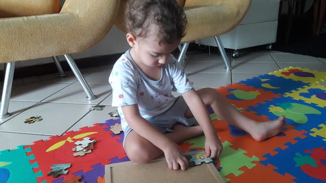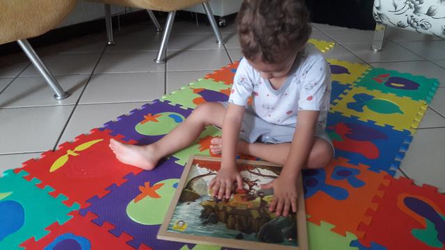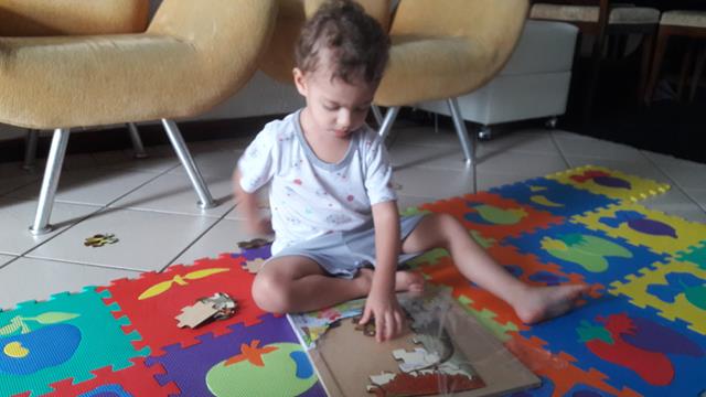 Quem disse que quebra-cabeça é apenas ginástica para o cérebro?! Final de domingo, hora de relaxar em casa e abrimos o brinde quebra-cabeça que recebemos da Aliciane Marcel. Ficamos os dois, mãe e menino a juntar as peças, e ali, naquele momento eu soube, que tinha feito a coisa certa, ver ele entretido, tranquilo, rindo das peças malucas, ajudando a montar o quebra-cabeça e perguntei: “Filho, onde está o macaco, onde está a árvore, onde está a nuvem, onde está o lago, onde está a pedra?” E depois, eu elogiei pela evolução dele e disse: ‘Filho, parabéns!”. Que orgulho da mamãe. Foi uma manhã muito gostosa, sem preocupações, só nós dois, juntinhos... Deus abençoe a semana de vocês! #maeemdia #brincarjunto #tempojunto #maternidadereal #maternidadeativaeconsciente #educandocomamor #DaviAntonioscom2anose7meses