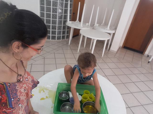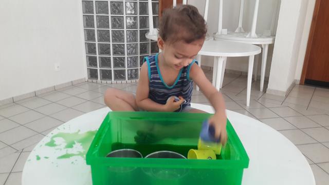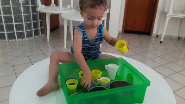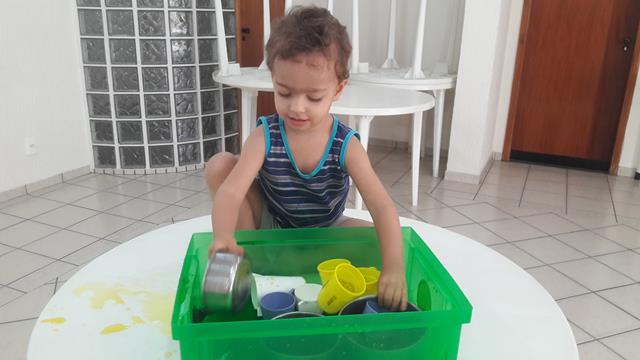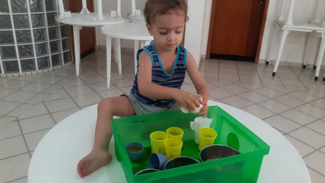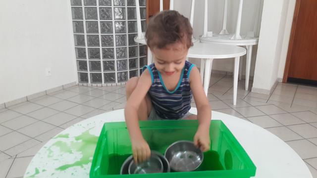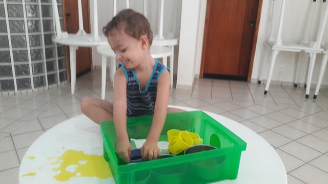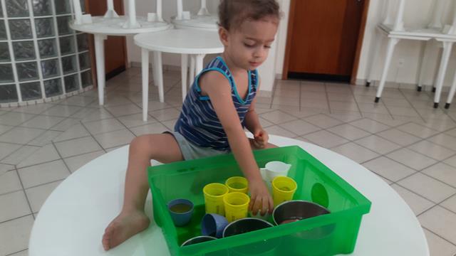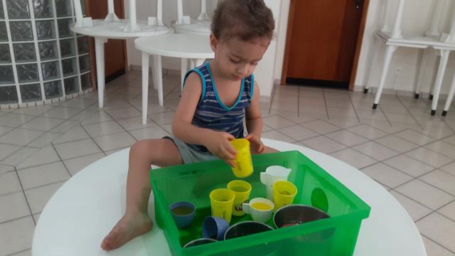 Atividade com água colorida. A mamãe usou a bandeja para montar um cantinho onde organizou os potes de água colorida. A mamãe deixou as vasilhas vazias para ele brincar de transferir água. Não precisou falar nada para ele começar a transferir água colorida para as vasilhas vazias, criando novas cores. Davi perguntou para a mamã: “Mamã, quero mais agua”. Mamãe repetiu novamente, brincando de novo. Uma excelente atividade para a coordenação motora. Foi uma maravilha! Ele ficou mais de uma hora envolvido com a atividade. O mais legal foi vê-lo absolutamente e-n-c-a-n-t-a-d-o com a mistura das cores. #maeemdia #brincarjunto #tempojunto #maternidadereal #maternidadeativaeconsciente #educandocomamor #DaviAntonioscom2anose7meses