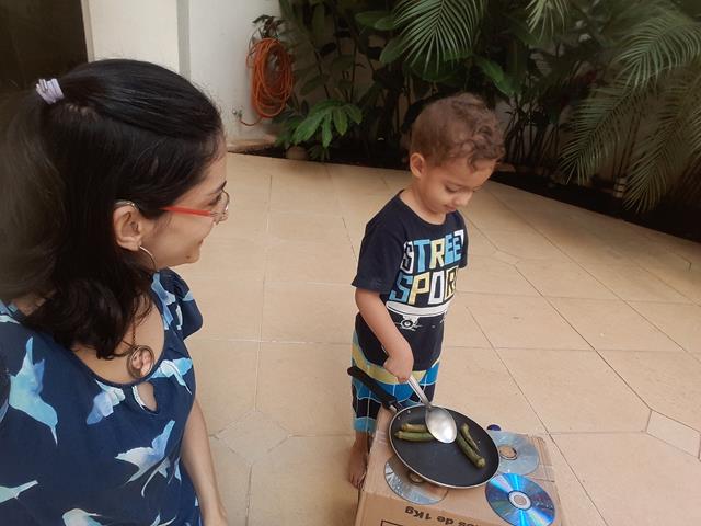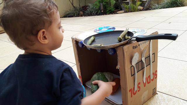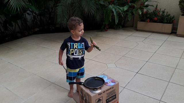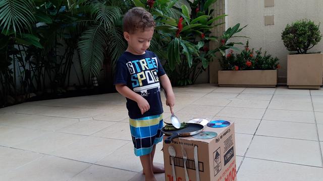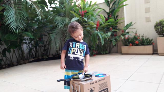 A mamãe é louca em caixas. Enquanto a maioria das pessoas olha uma caixa de papelão e pensa “entulho” a mamãe pensa “oba, o que dá pra inventar?” Esse fogão lindo de papelão foi feito pela mamãe para o Davi Antonios brincar. Tampinhas de produtos se transformam em botões do fogão. Davi Antonios adicionou o seu fogão e uma panela e foi uma diversão fazer comidinhas. Quantas possibilidades de aprendizado e trabalho de coordenação motora estão envolvidos nessa brincadeira! É maravilhoso. #maeemdia #brincarjunto #tempojunto #maternidadereal #maternidadeativaeconsciente #educandocomamor #DaviAntonioscom2anose7meses