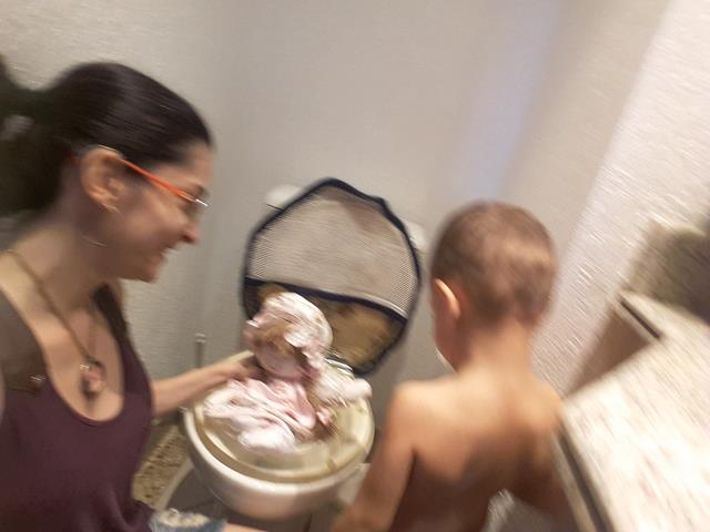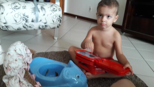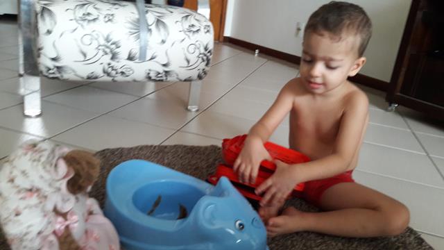 Após 2 anos, ele ainda não estava preparado para este desfralde. A mamãe fez o livro sobre “O Cocô Amigo” com tampas de sorvete. Paciente no processo, com muita conversa cheia de carinho e amor. Com 2 anos e 7 meses, na semana passada, ele fez seu primeiro cocô na privada. Largou a fralda, sentou no vaso sanitário e disse que ele já era grandinho e não precisava mais da fralda. E com toda confiança seguiu o percurso. Ele ficou tão feliz com a conquista, ele está tão orgulhoso! A mamãe está ainda mais feliz!