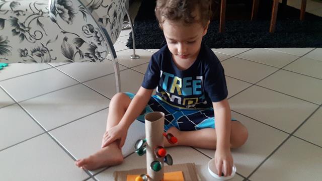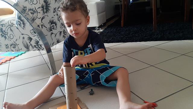 A mamãe sugeriu o rolo de papel toalha, palito de picolé, papel EVA, papelão, tampinha de cerveja e pompom. A mamãe colou o palito de picolé com a tampinha de cerveja e furou o rolo de papel tolha para colocar o palito, feita como uma árvore. Uma boa atividade para desenvolver a atenção e concentração para colocar cada pompom no seu lugar. O objetivo é parear as cores correspondentes aos palitos de picolé. Essa atividade fluiu bem e a mamãe ficou tranquila e satisfeita com a independência dele. Ele curtiu “demais” tirar e colocar o palito nesta atividade. #maeemdia #brincarjunto #tempojunto #maternidadereal #maternidadeativaeconsciente #educandocomamor #DaviAntonioscom2anose7meses