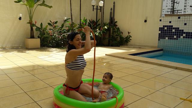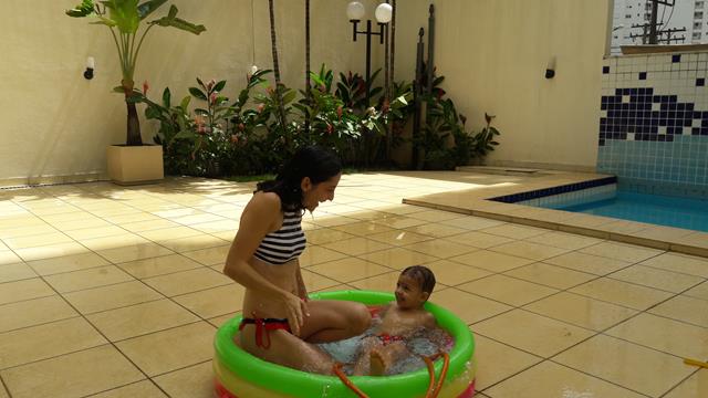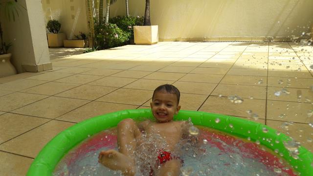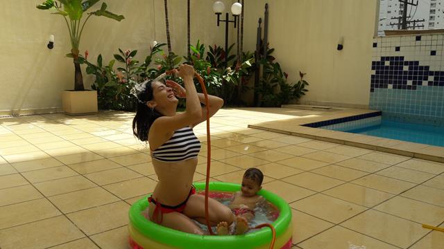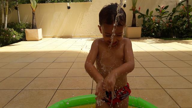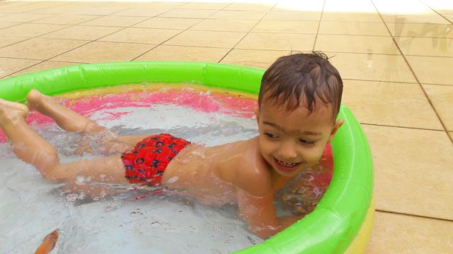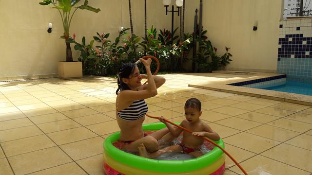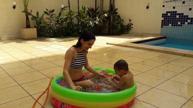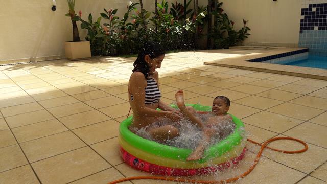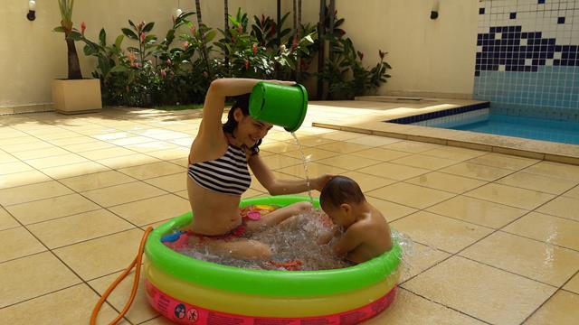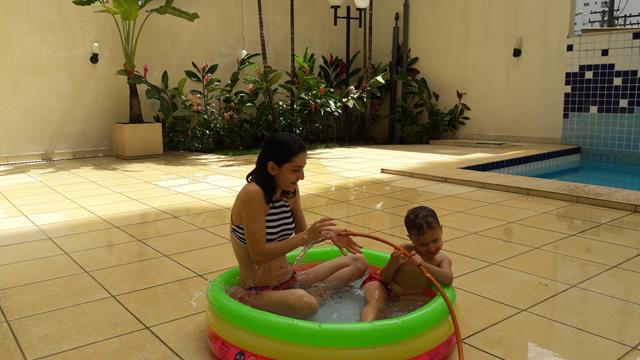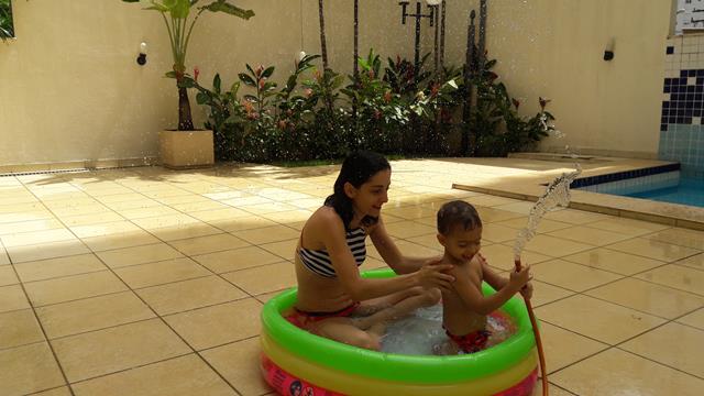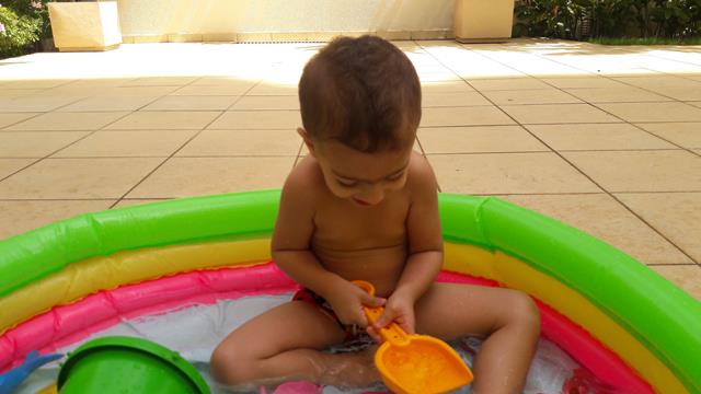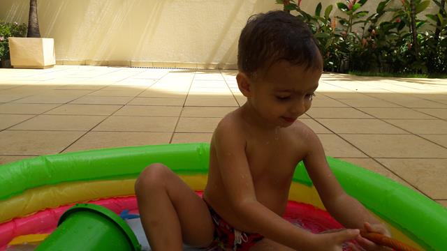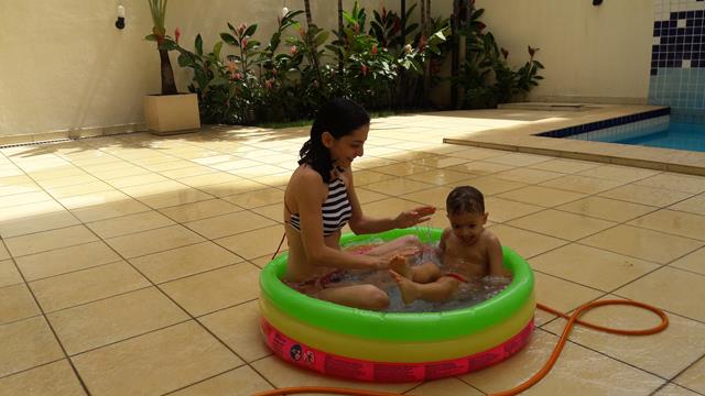 Desde o dia que voltei a ser criança, na verdade acho que nunca deixei de ser :) ainda mais com um príncipe em casa! Aproveitando o solzinho de fim de manhã pra um ‘mergulho’ de piscina! Que delícia! Momentos que ficam pra sempre na memória. Depois de muita preparação tiramos um tempo pra foto (risos). Taí um momento muito especial. E a gente aproveita mesmo! É muito beijo, cheiro, abraço, dengo, amor, risada e brincadeira!