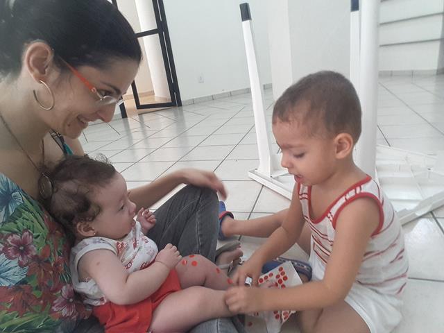 Geeeeeente, sabe quem está participando da nossa primeira atividade? A querida prima Helena. Davi colando o adesivo o corpo da Helena rsrsrs. Davi simplesmente amou e nos divertimos muito juntos! Rimos muito. #maeemdia #brincarjunto #tempojunto #maternidadereal #maternidadeativaeconsciente #educandocomamor #DaviAntonioscom2anose7meses #Helenacom6meses